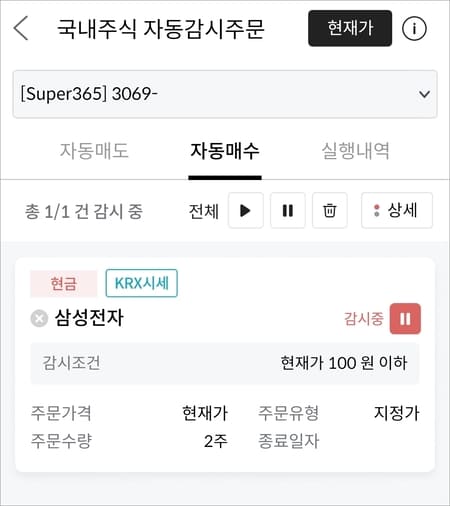 메리츠증권 국내주식 자동감시주문 매도 매수 거래 방법