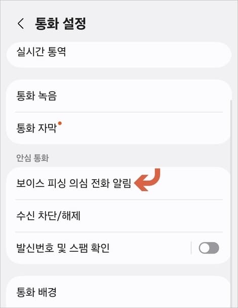 갤럭시 보이스피싱 의심 전화 알림 사용 설정 방법