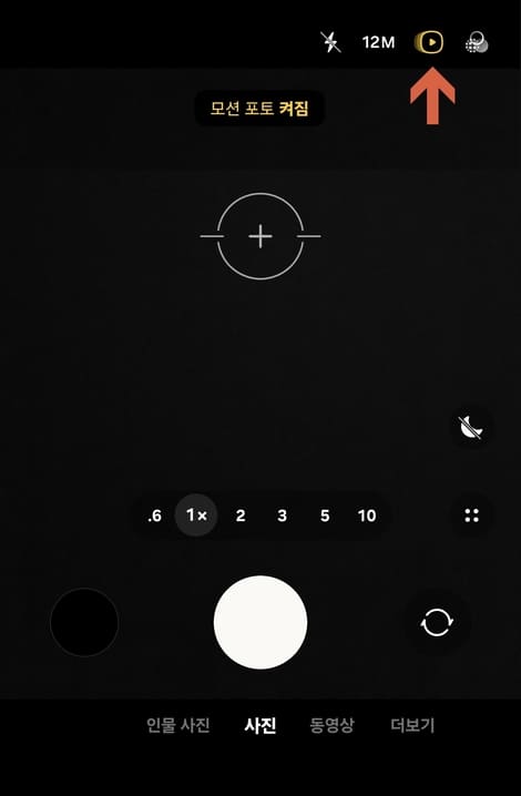 먼저 카메라를 실행하고 화면 우측 상단에 동영상 재생 모양 아이콘을 눌러 모션 포토를 켜줍니다. 그러고 나서 사진촬영하시면 됩니다.