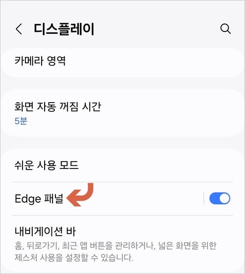 먼저 설정 앱을 실행하고 디스플레이에 들어갑니다. 목록에서 Edge 패널 글자를 눌러줍니다.