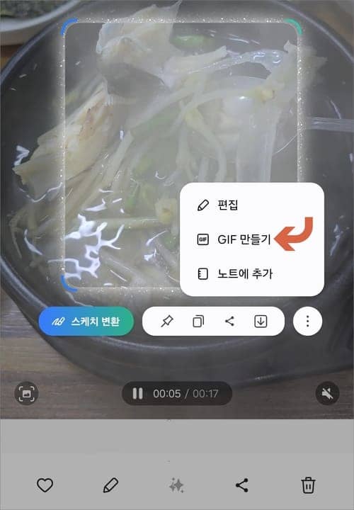 영역을 직접 잡아주고 점 3개( ⋮ ) 아이콘을 눌러 GIF 만들기를 선택합니다.