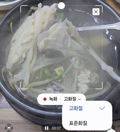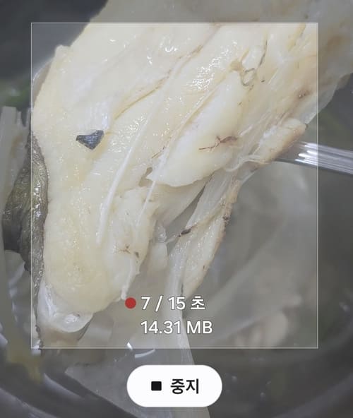 15초 내로 녹화 후 중지 버튼을 터치합니다.