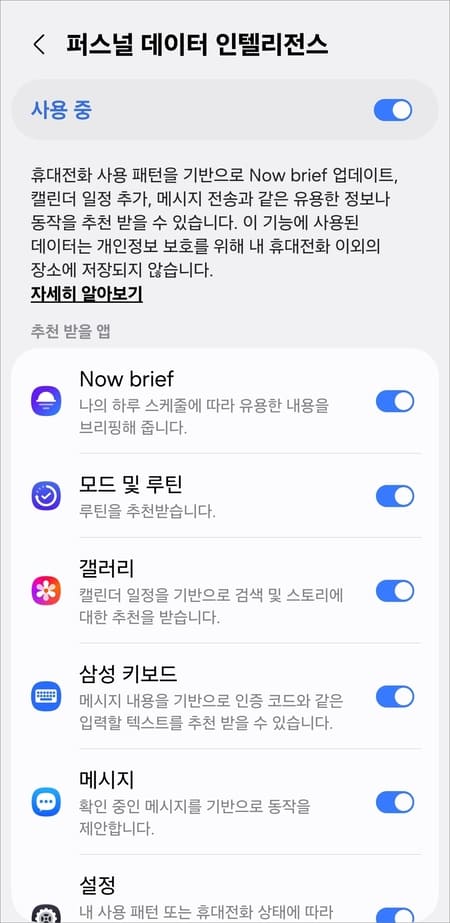 - 추천 기능 중단: Now brief가 꺼지고, 삼성 앱에서 제공하던 맞춤형 추천을 더 이상 받을 수 없게 됩니다.