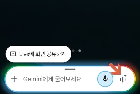 갤럭시 제미나이 라이브(Genini Live)는 이름 그대로 텍스트 프롬프트를 입력해서 질문하는 게 아니고 실제 음성으로, 즉 대화로 화면이나 카메라를 공유해서 사용할 수 있습니다. AI와 통화하듯, 대화하듯한 느낌으로~