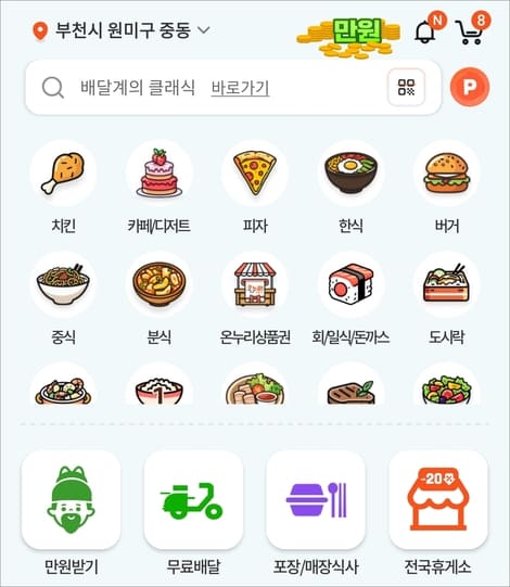 본인 휴대폰에서 땡겨요 배달앱을 실행합니다.