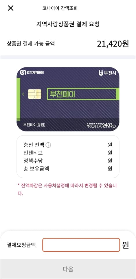 부천페이 가맹점이면 바로 확인이 가능합니다.(민생회복 소비쿠폰 포함)