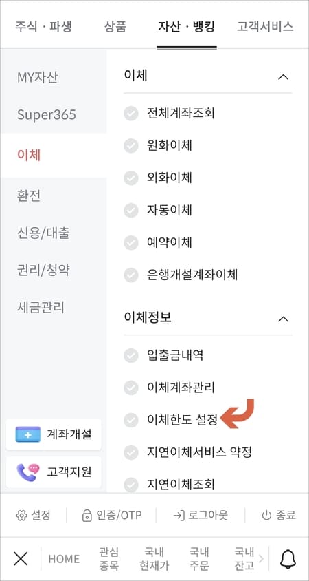 이때 당황하지 않으려면 내가 설정한 이체한도와 사용 중인 보안매체의 등급을 미리 확인해 두는 것이 좋습니다.