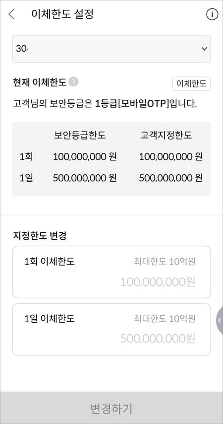 즉, 내 보안 등급이 낮으면 아무리 지정 한도를 높여도 이체가 제한될 수 있습니다.
