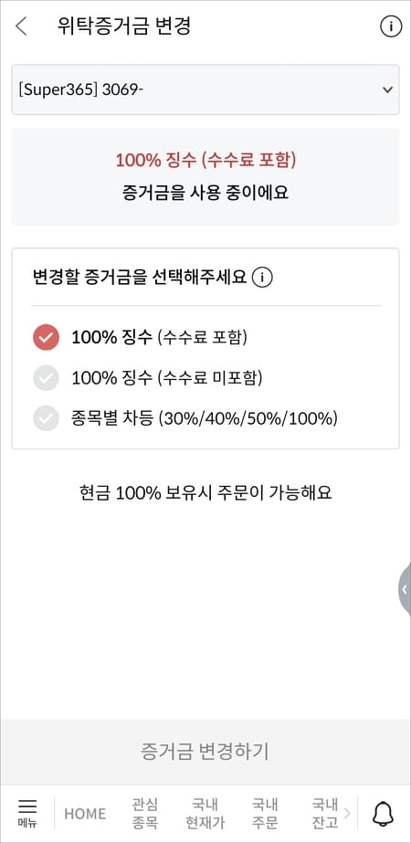 메리츠증권 주식 위탁증거금 100% 변경 방법