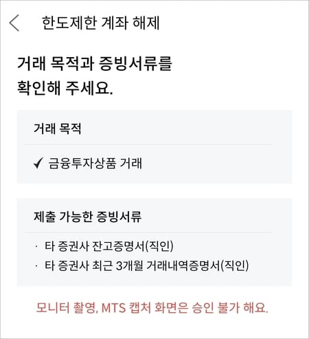 즉, 저축이 아닌 실질적인 투자 기록을 보여줄 수 있는 증권사 발행 서류를 준비하셔야 원활한 해제가 가능합니다.