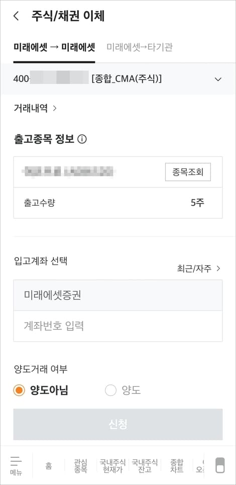 미래에셋증권 주식·채권 대체출고 이체 증여·양도 방법