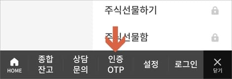 전체 메뉴 화면으로 이동하면 하단에 인증 OTP를 선택합니다.