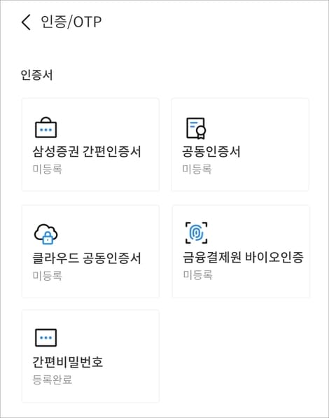 그리고 자체적인 삼성증권 간편인증서도 있는데 개인당 하나의 핸드폰 기기에서만 사용 가능하며 다른 핸드폰이나 기기 변경 후 간편인증서를 발급하게 되면 기존 인증서는 자동 폐기 처리됩니다.