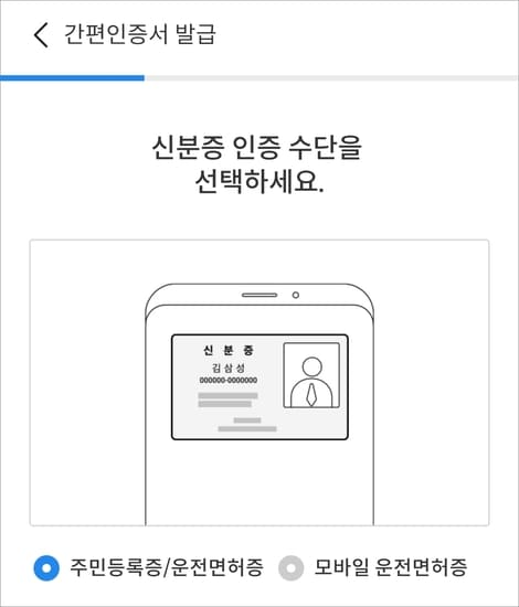실물 신분증 또는 모바일 신분증을 선택하고 본인 확인을 진행합니다.