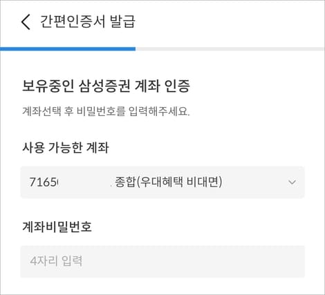 해당 화면에서는 인증서 발급 등록이 가능한데요. 삼성증권 간편인증서를 선택합니다.