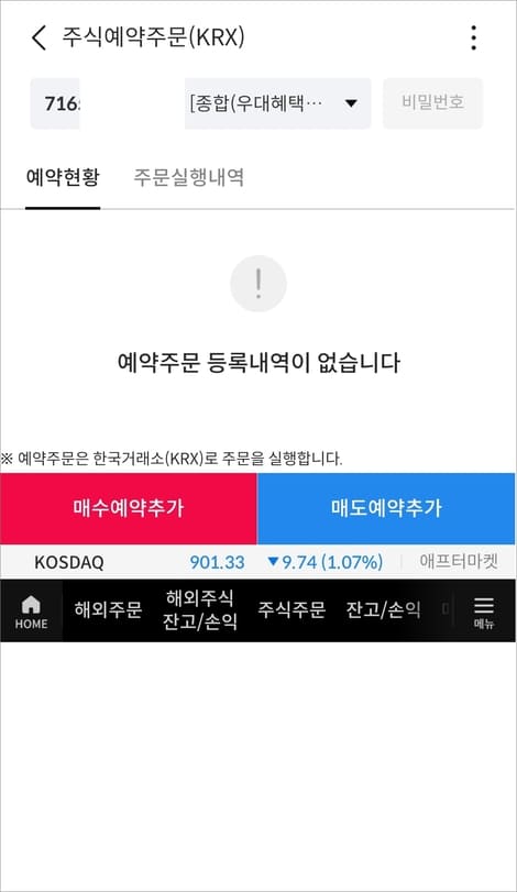 예약주문은 예약번호 순서대로 처리됩니다. 그래서 증거금이 부족하거나 계좌 잔고가 모자라면 주문이 실행되지 않을 수 있다는 점 알아두세요.
