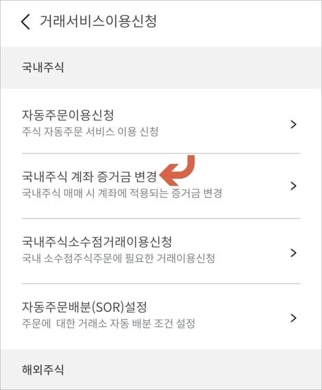 국내주식에서 계좌 증거금 변경을 선택합니다.