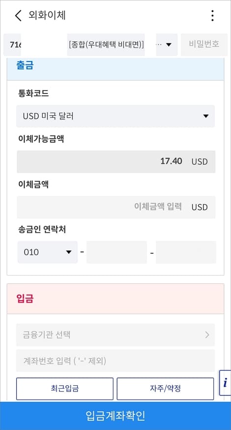 이체할 금액을 입력하고 입금 은행과 계좌번호를 입력하고 이체를 진행하시면 됩니다.