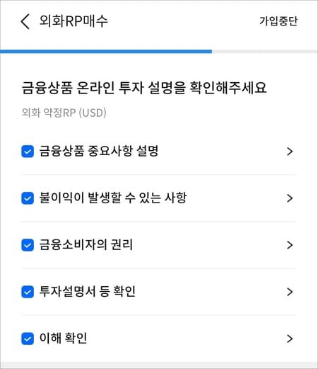 주요 사항 설명, 불이익이 발생할 수 있는 사항, 금융소비자의 권리, 설명서확인, 이해 확인 등 체크 동의가 필요합니다. 이 과정이 조금 번거로울 수 있지만 일일이 다 확인해 주셔야 합니다.