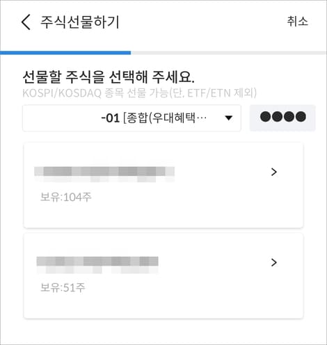 별도로 보유하고 있는 주식이 없다면 바로 종목 선택하고 매수해서 선물하시면 되고, 코스피(KOSPI)와 코스닥(KOSDAQ) 종목만 선물이 가능합니다.(ETF/ETN 제외)