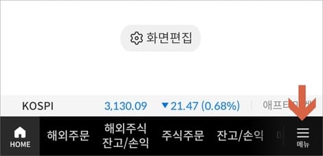 홈 화면 맨 하단 우측에 메뉴(≡)를 눌러줍니다.