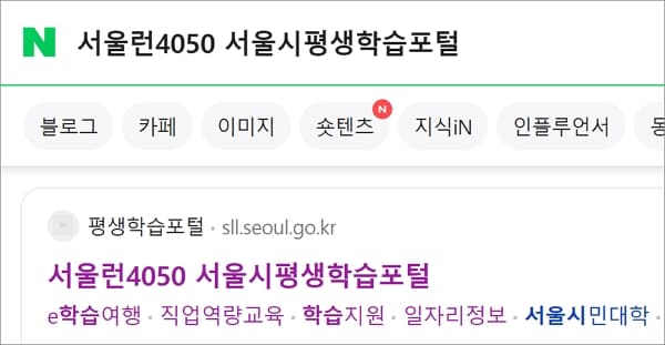 네이버에서 서울런4050 서울시평생학습포털을 검색하고 해당 웹페이지에 접속합니다.