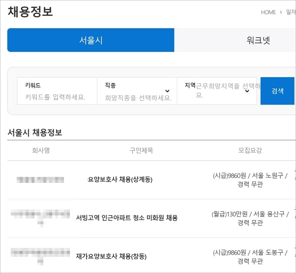 채용정보 검색 시 키워드/직종/지역 등의 검색 옵션을 활용하시면 좀 더 수월한 채용공고 검색이 가능할 겁니다.