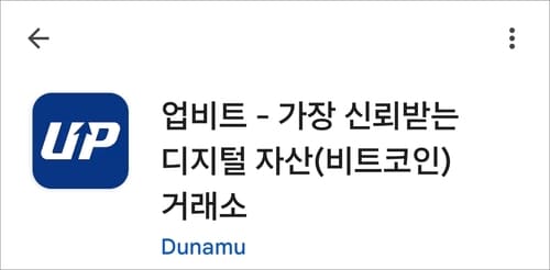 구글 플레이 스토어에서 업비트 앱(디지털 자산 비트코인 거래소)을 검색하고 설치합니다..