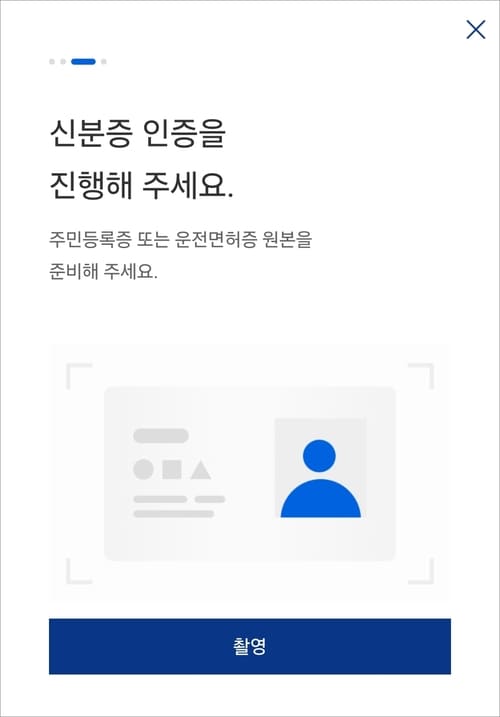 실물 신분증을 어두운 바닥에 놓고 휴대폰으로 촬영해서 인증합니다.