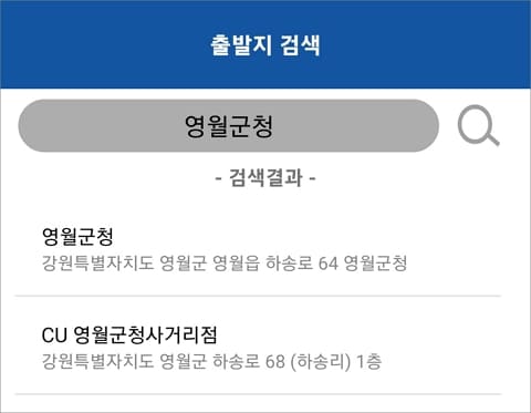 ▲ 화면 하단에 글자 입력이 가능한 부분을 터치하시면 지역 검색으로 출발지 선택도 가능합니다. 택시 호출하려는 위치에 따라서 원활하게 배차될 수 있지만 주변에 차량이 없는 경우 지연되거나 호출이 어려울 수도 있습니다.