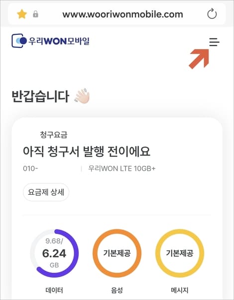 우리원모바일 요금제 변경 방법