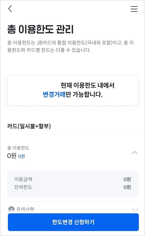 전북은행 카드 이용한도 증액 등 변경 방법