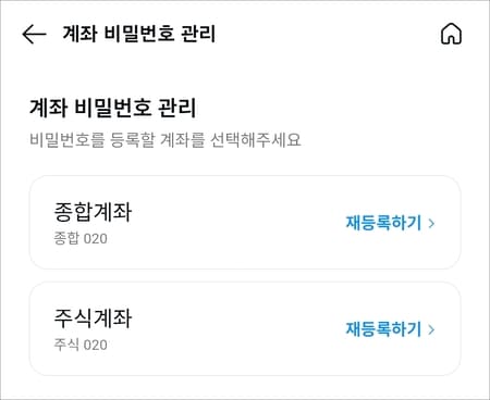 주식 거래 시 종종 입력하게 되는 계좌 비밀번호를 분실 까먹은 경우 관리를 통해서 쉽게 재등록해 주시면 되겠습니다.