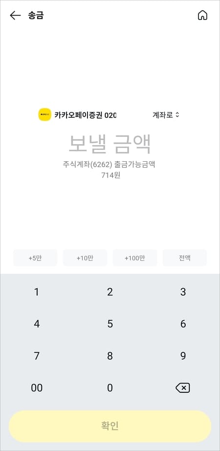 종합계좌 또는 연결된 내 계좌로만 송금이 가능합니다.