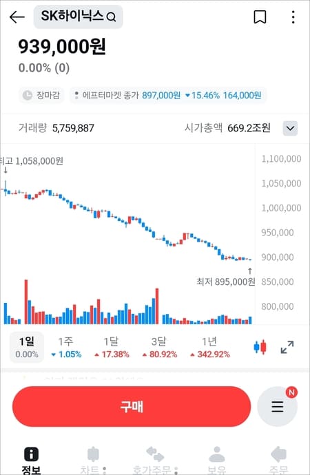현재가를 확인하고 하단에 구매 버튼을 눌러줍니다.