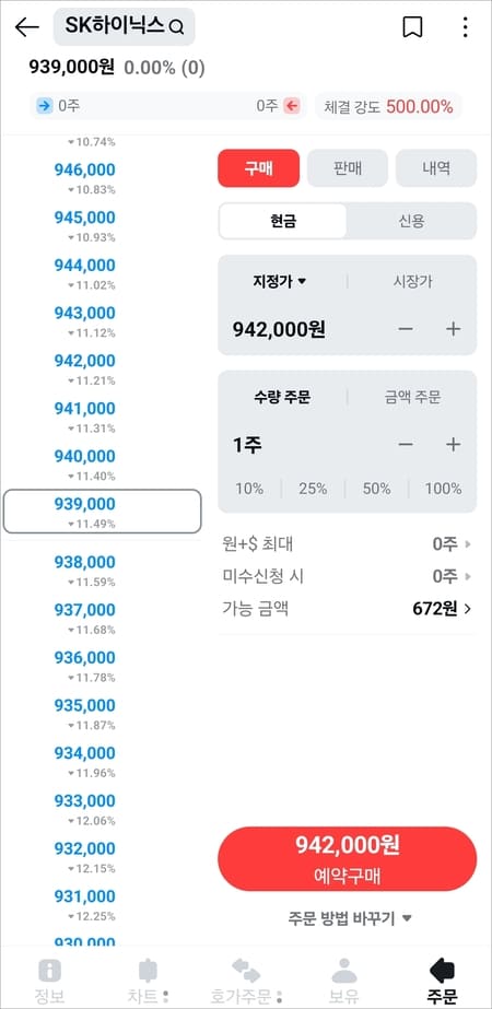 가격과 수량을 입력하고 예약 주문 접수하시면 됩니다.