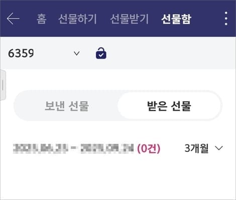 선물함에서는 보낸 선물과 받은 선물을 확인할 수 있습니다.