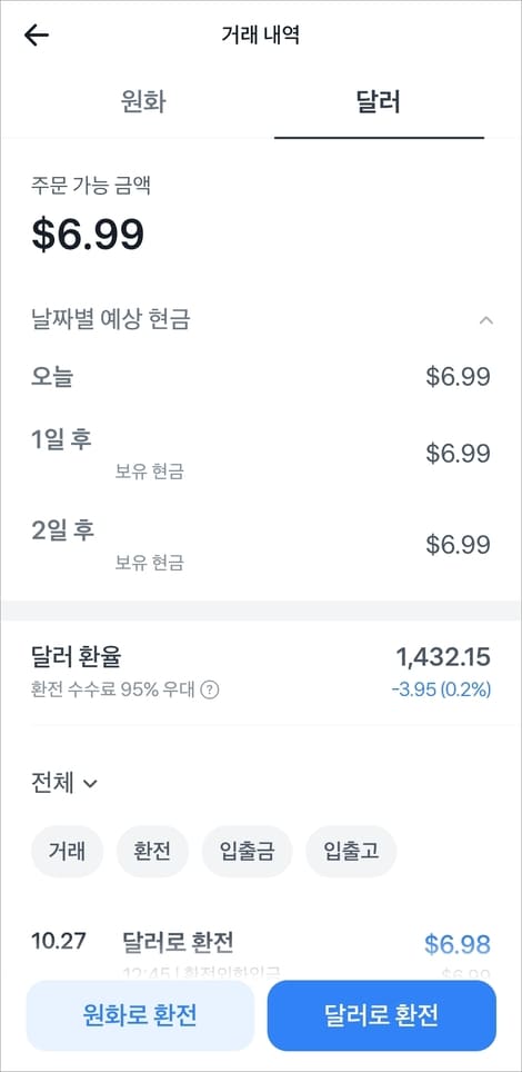 토스증권 달러 환전 및 출금 가능 예수금 조회 방법