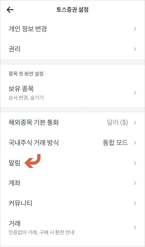 토스증권 주문 체결 및 입출금, 배당금 입금 등 알림 설정 방법