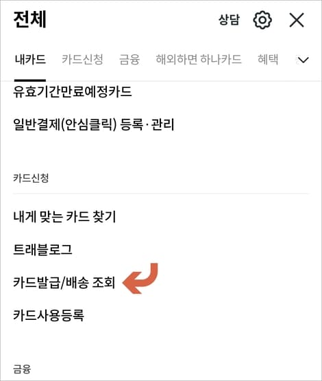 하나카드 발급 및 배송진행 상황 조회 확인 방법