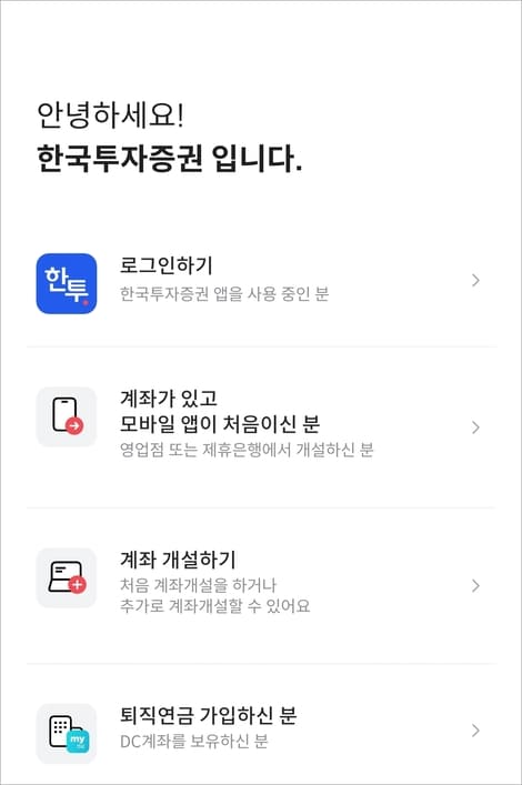 본인 휴대폰에서 한국투자증권 MTS 앱을 실행합니다.