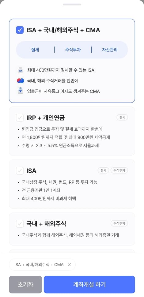 주식과 ISA+CMA 계좌를 동시에 만들 수도 있습니다.