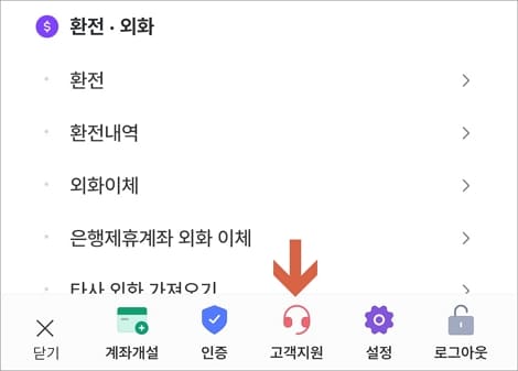 화면이 전환되면 마찬가지로 하단에 고객지원을 선택합니다.