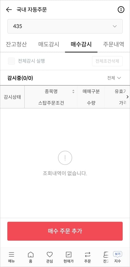 자동주문은 본인이 미리 설정해둔 감시 조건(가격, 등락률 등)에 도달하면, 시스템이 자동으로 주문을 실행해 주는 기능입니다.