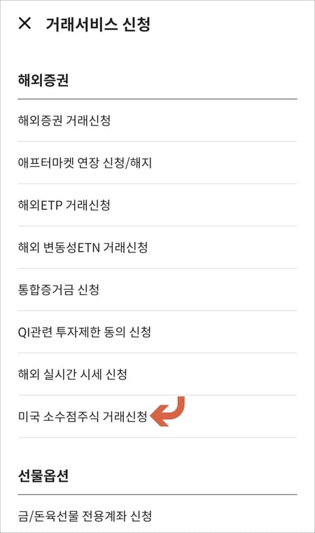 해외증권에서 미국 소수점주식 거래신청을 선택합니다.