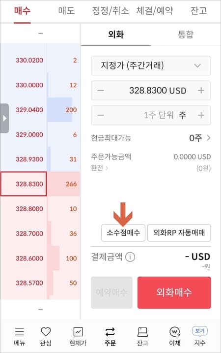 소수점은 실시간 거래가 아니라 예약 구매 느낌입니다.