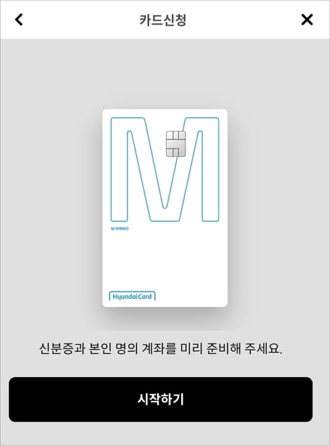 상단에 하이브리드카드를 선택하고 카드M 또는 카드X 중에 선택합니다.