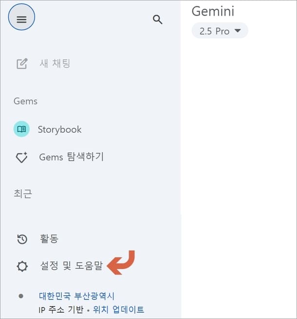 PC 화면 기준으로 화면 왼쪽 상단에 가로 3줄 모양(메뉴 펼치기)을 클릭하고 메뉴창이 표시되면 아래쪽에 설정 및 도움말을 클릭합니다.