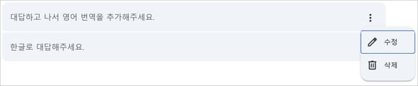 어디까지나 개인화 대답을 얻기 위한 맞춤설정으로 언제든지 끄기/사용이 가능하며 추가한 요청 정보도 수정/삭제할 수 있습니다.