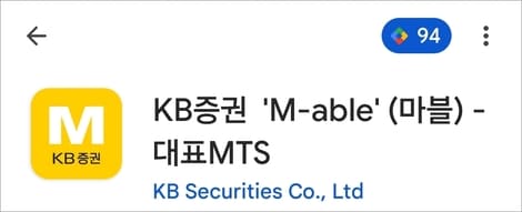 우선 구글 플레이 스토어에서 KB증권 M-able(마블) 앱 이름을 검색해서 설치합니다.